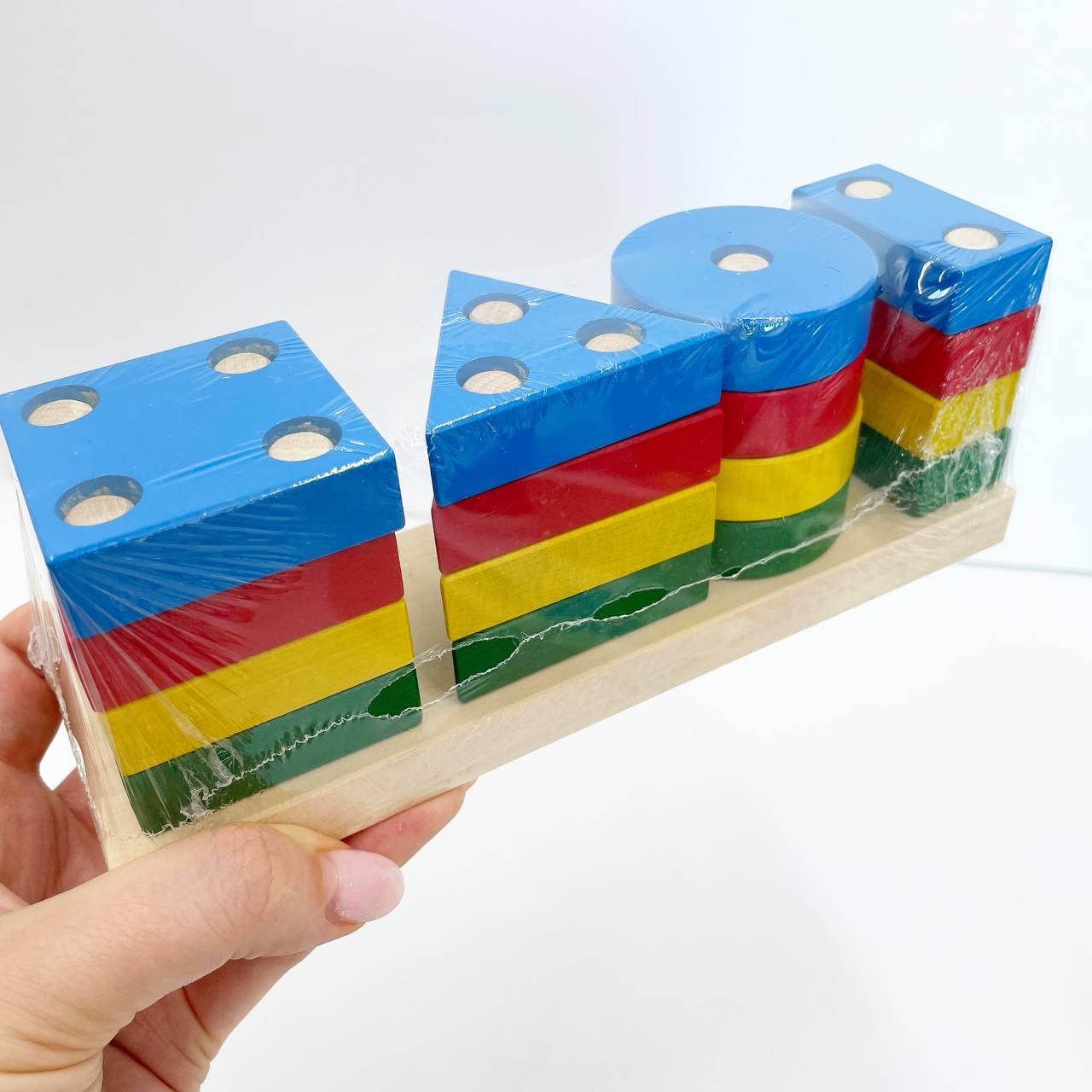 Дерев'яна пірамідка сортер геометричний "Гео Класик" KomarovToys. A 311, 16 елементів, вік від 2-х років